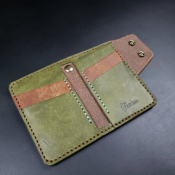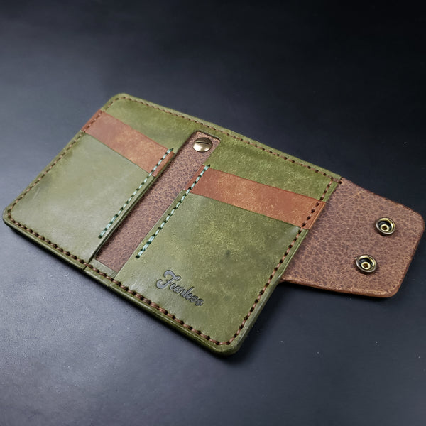 This vertical wallet can hold multiple cards and cash, plus still fits easily in your hands, front or back pocket. In addition to being elegantly closed with two snaps to keep all your things in place.