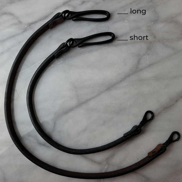• leather strap measurement without snaps – short 12" or long 18",