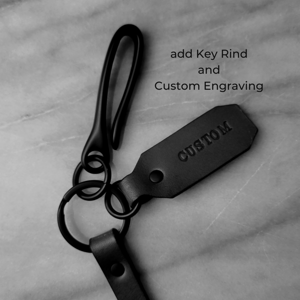 • Leather belt loop – made from 11oz full grain leather with black painted and hand-finished edges, fitting snugly on belts up to 1.5".