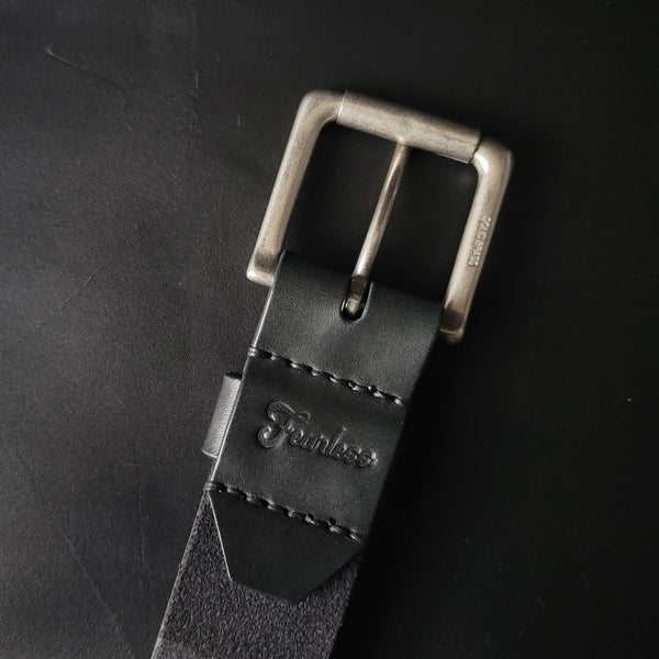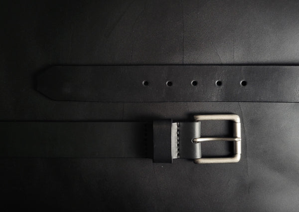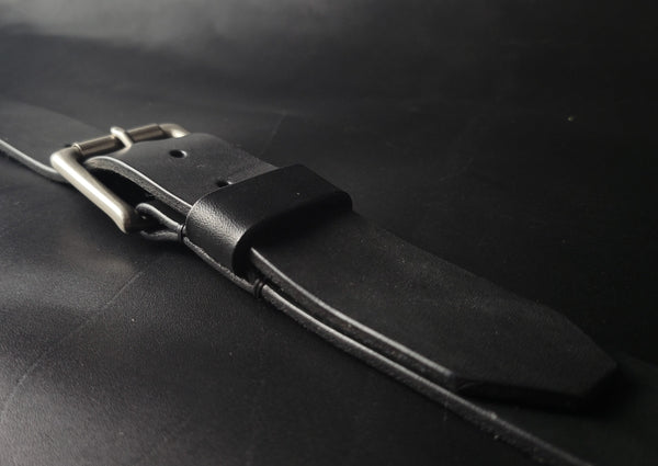 stitched BLACK LEATHER BELT - nickel matte buckle