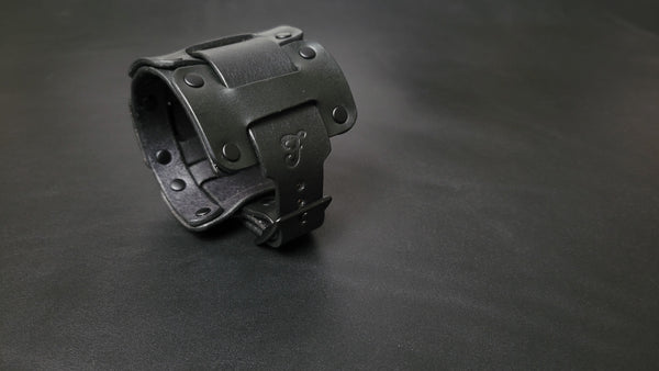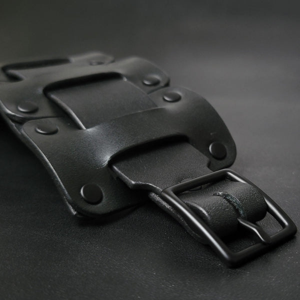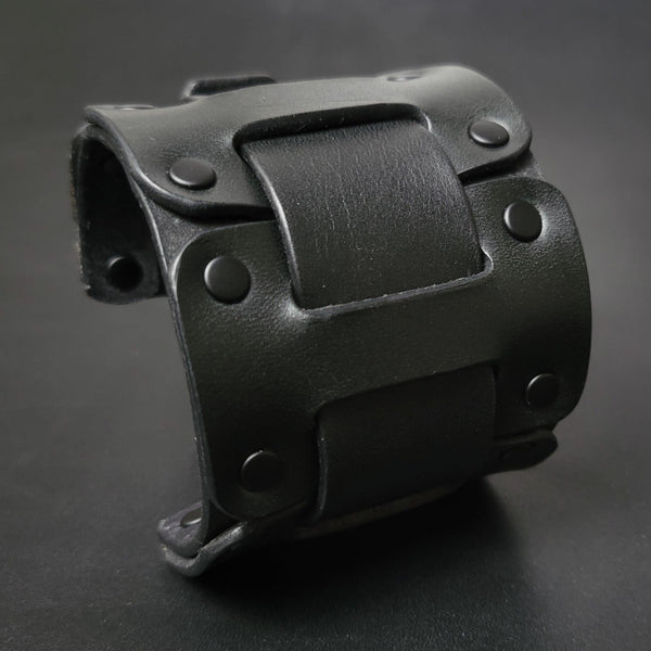 LEATHER CUFF BRACELET / BIKER'S WRISTBAND - black leather