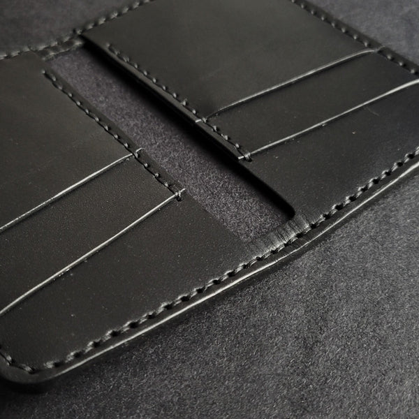Elevate your style with our 6-pocket vertical wallet. It's compact, yet spacious enough to hold cash and multiple cards. Crafted from durable full-grain leather, each piece is finished before assembly, ensuring a bold and elegant style. The meticulous hand stitching gives it a unique look and feel. With its timeless design and high-quality materials, this wallet is built to last.