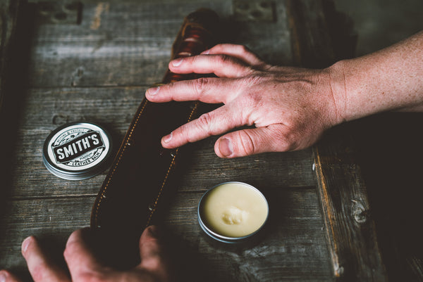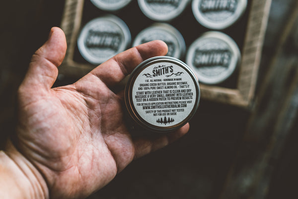 Smith’s Leather Balm is a non toxic leather conditioner designed to restore worn leather and protect new leather goods.