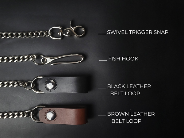 Crack the throttle with the fearless wallet chain, crafted from solid brass. The bolt swivel lever snap will keep your wallet close at hand, and with 4 snap styles to choose from, you can customize your look to suit your style.