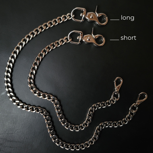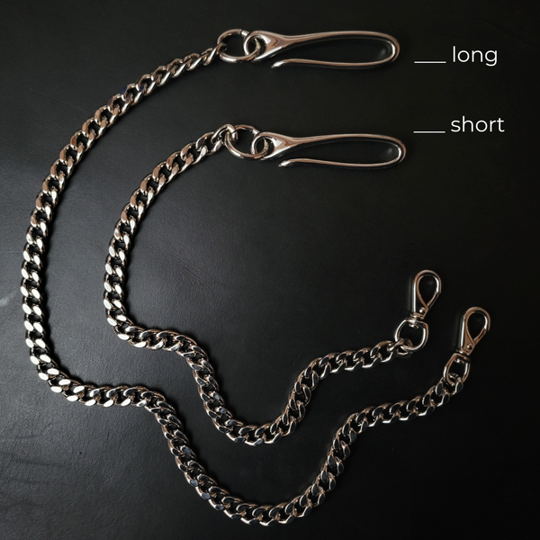 But why stop there? Keep your keys protected with our add key ring option, securely connected between the chain and your chosen snap. And if you're having trouble finding the perfect wallet chain size or combination, don't sweat it – just shoot us a message and we'll help you get the right fit for you.